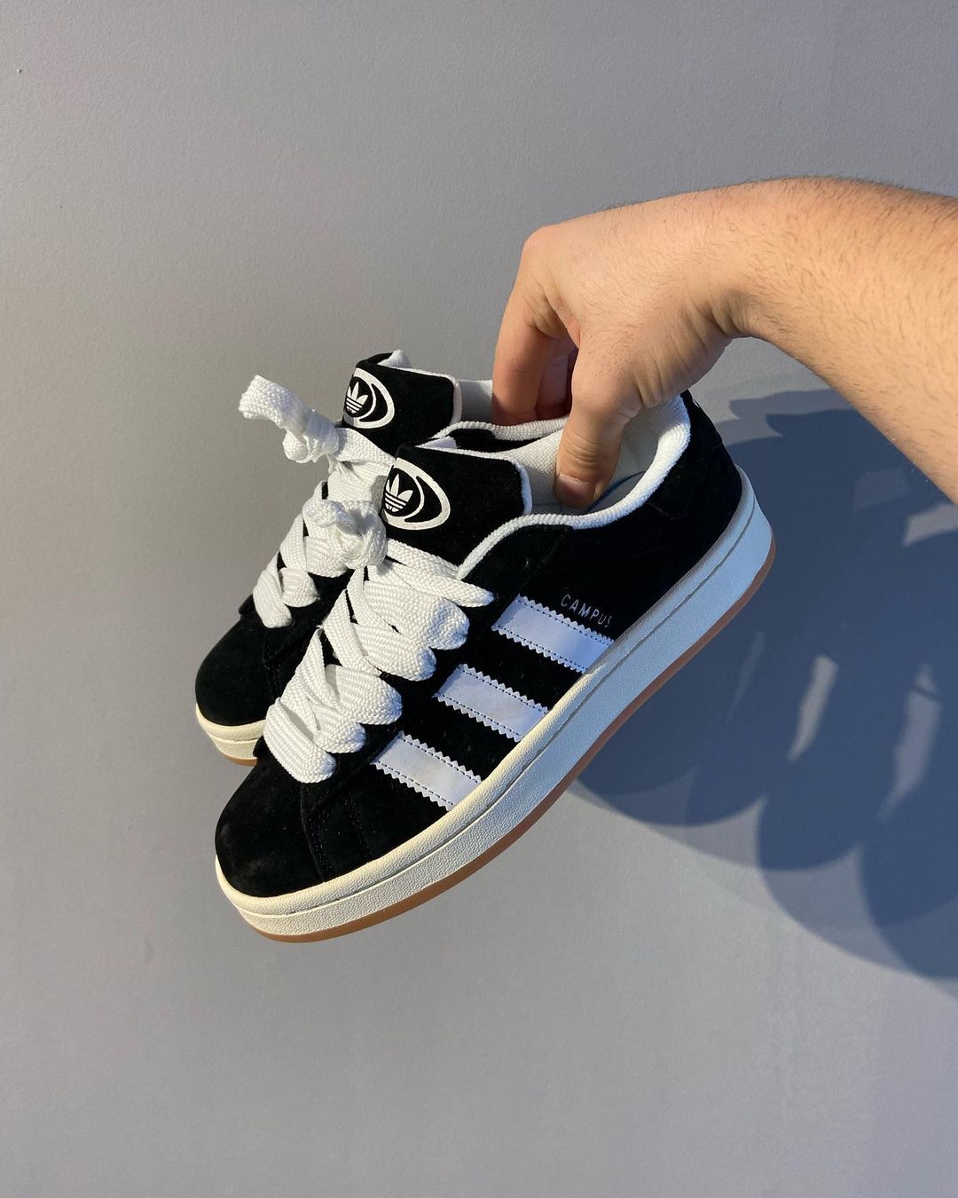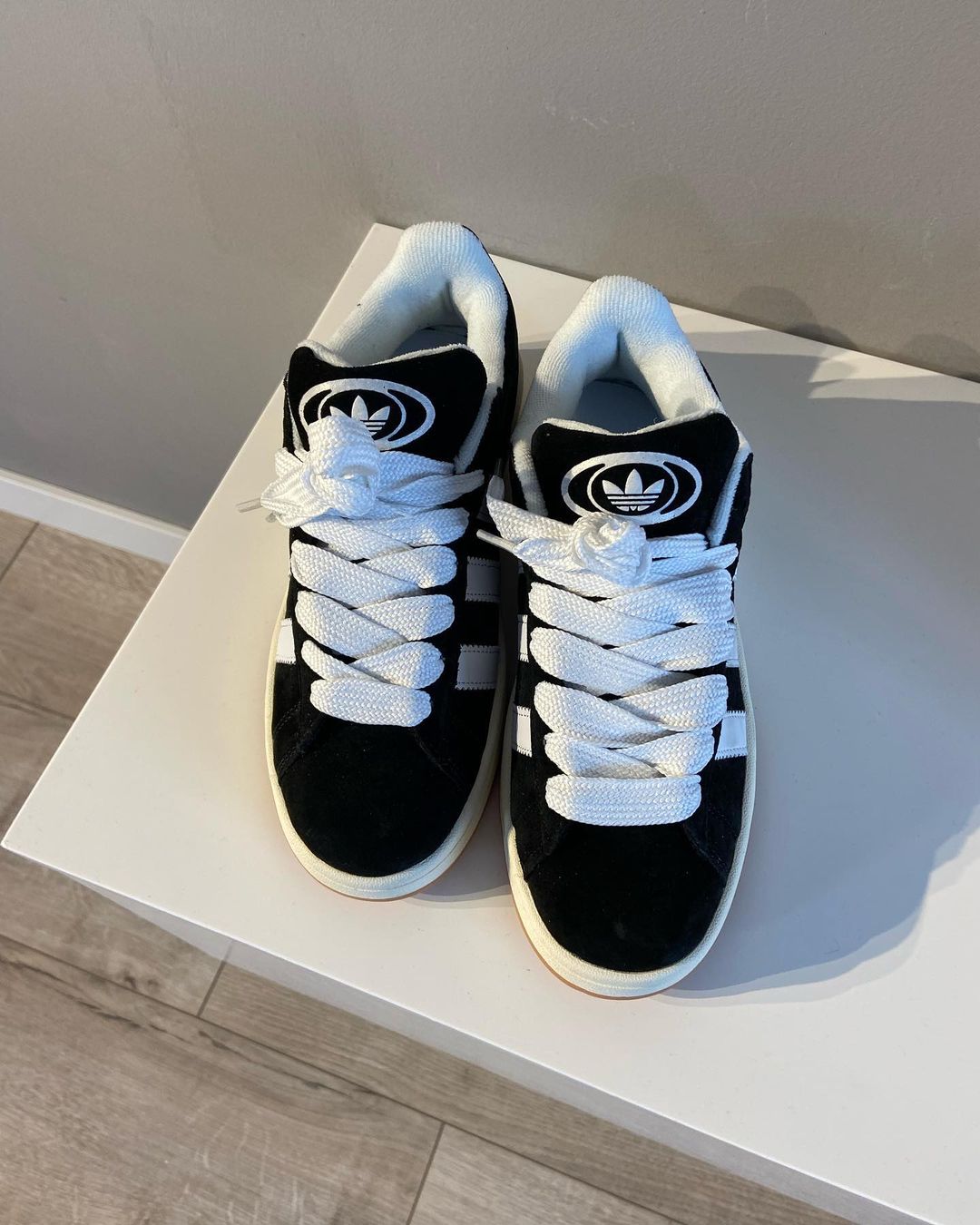The adidas Campus embodies the timeless appeal of street fashion, drawing inspiration from the vibrant Tokyo hip-hop culture of the 2000s. Crafted with a black suede upper adorned with white logo stripes, and paired with a substantial white midsole, this sneaker epitomizes a classic urban aesthetic.